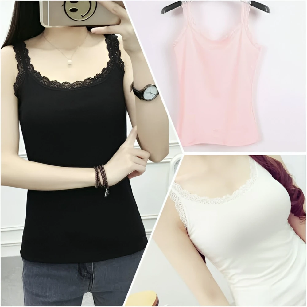 Premium Quality Soft Silky Malai Camisole with Lace Shoul